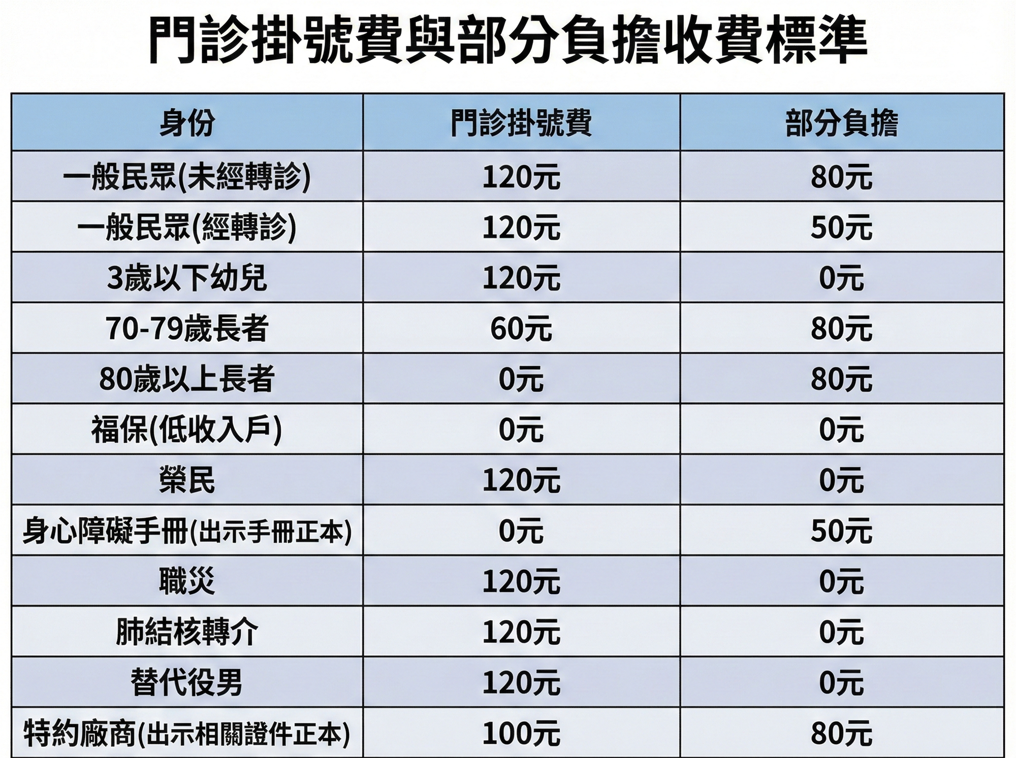 門診掛號費、部分負擔